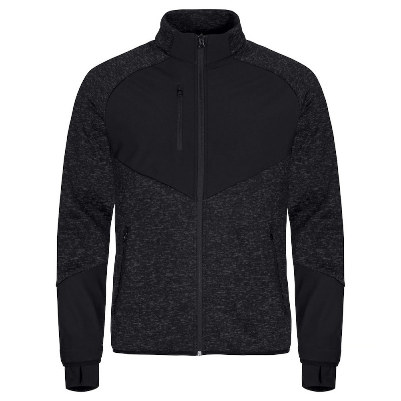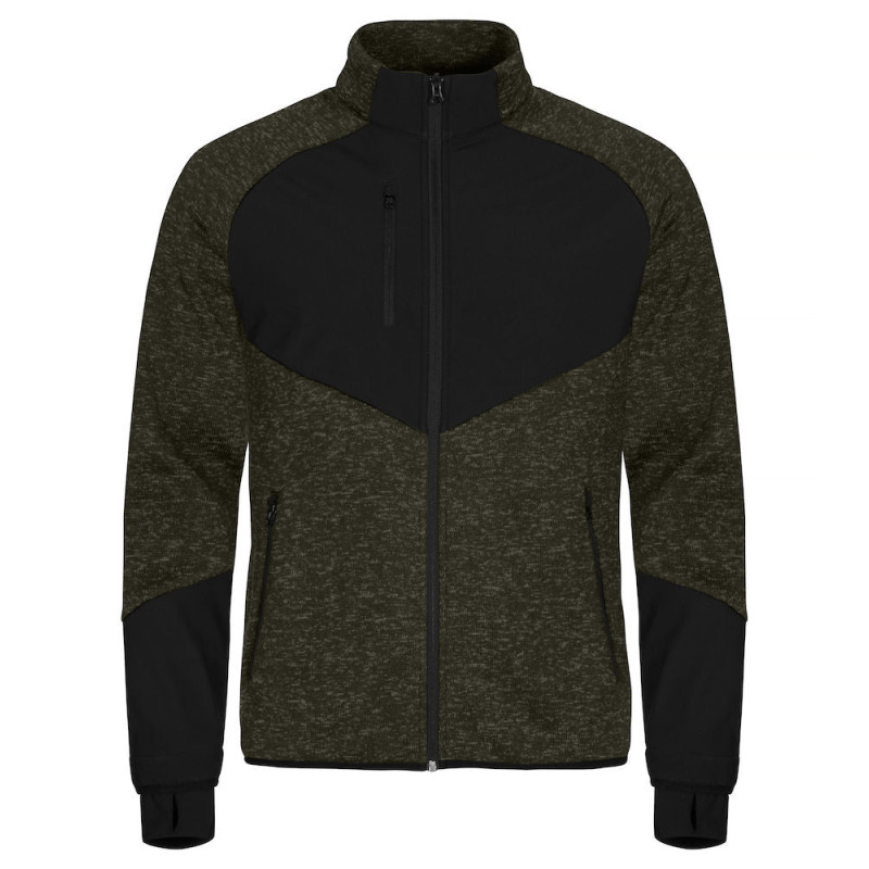 Teplá, pohodlná pletená fleecová bunda se softshellovými vsadkami. Se třemi vnějšími kapsami na zip a dvěma velkými vnitřními kapsami. Elastické vnitřní manžety s otvory na palce a reflexní páskou. Závěsné poutko na zadní straně krku a snadno odnímatelný rebrandingový štítek.