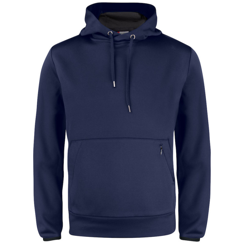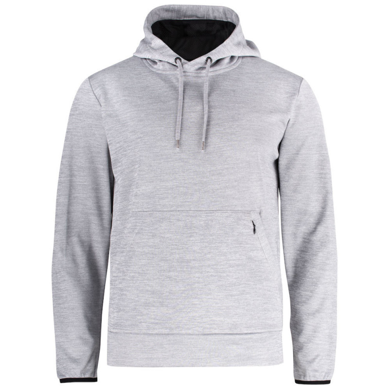 Funkční a sportovní kapuce. Dodává se s klokaní kapsou a další skrytou kapsou na zip. Kapuce má síťovanou podšívku a stahovací šňůrku. Elastické manžety na rukávech. Manžeta ze skořápkové látky ve spodní části. Lze prát do 40°C