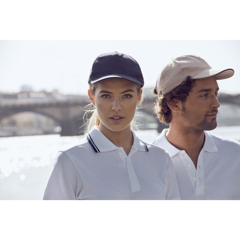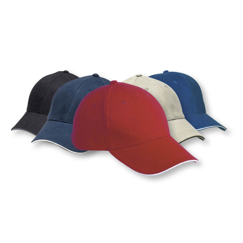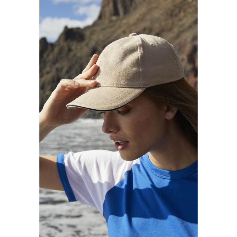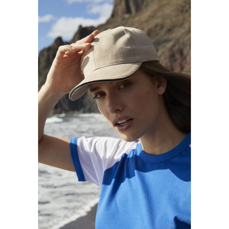 Cap mit farblich abgesetztem und verstärktem Schirm, verstellbares Band mit Messingverschluss.