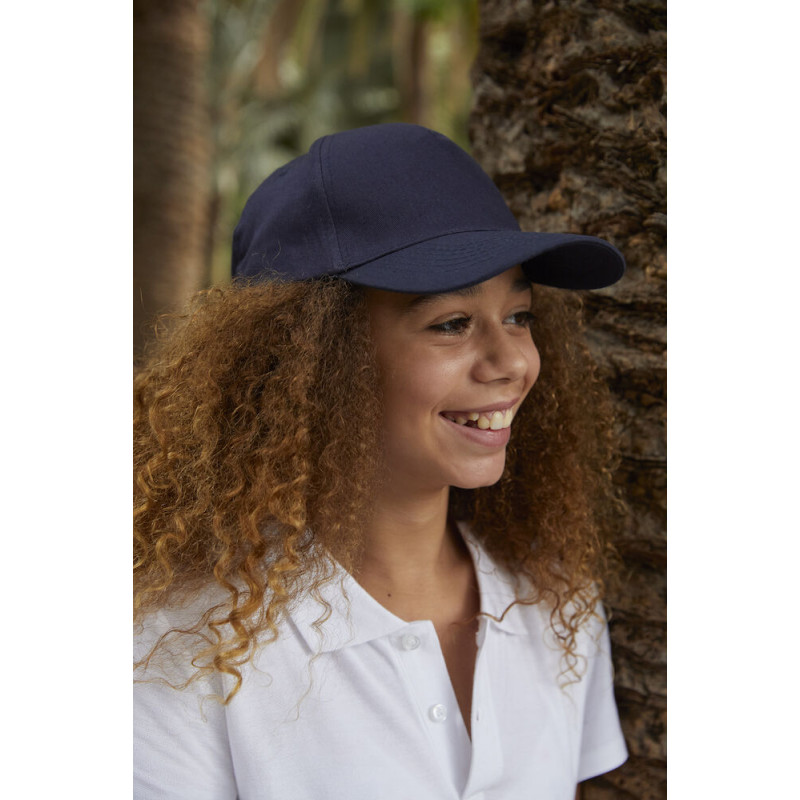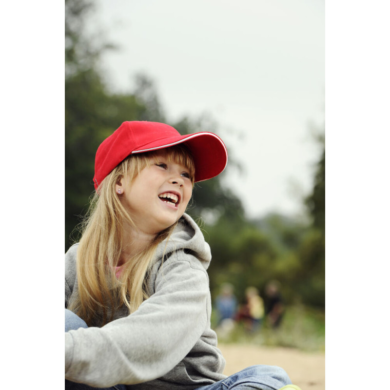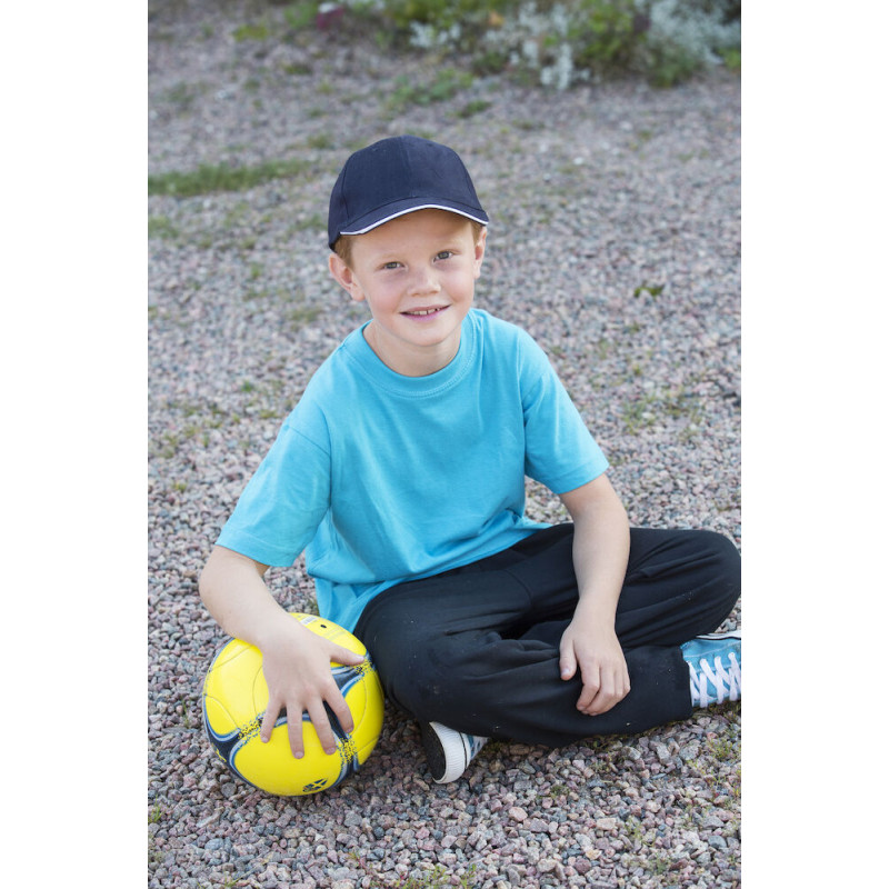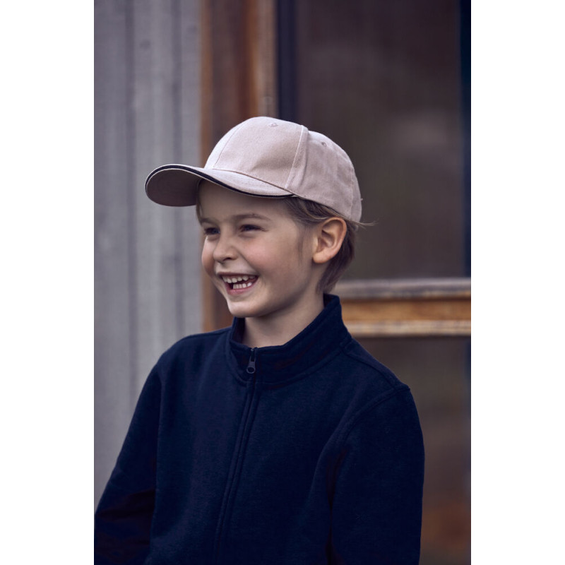 Cap für Kinder mit farblich abgesetztem und verstärktem Schirm, verstellbares Band mit Messingverschluss.