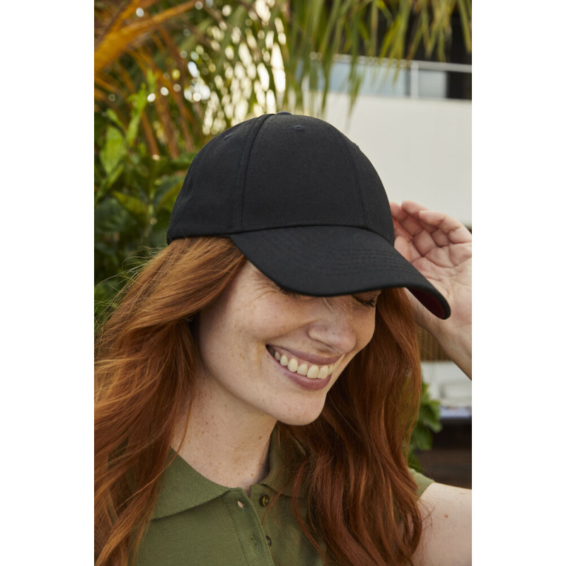 Klassische 6-Panel-Cap aus ungebürstetem Baumwolltwill und Größenverstellung mit Klettverschluss.