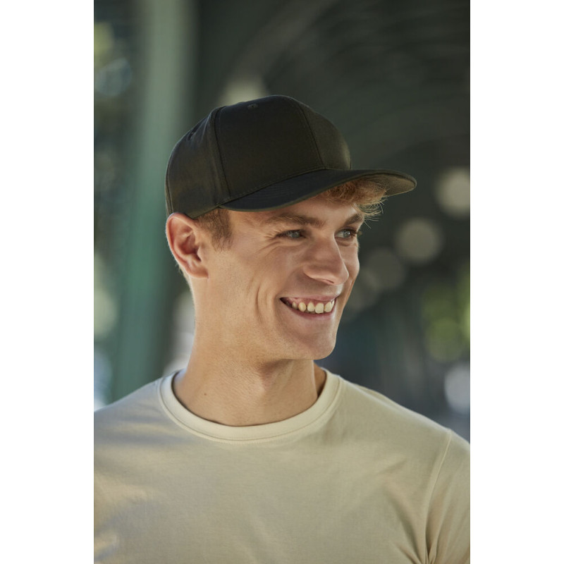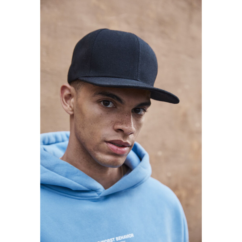 6-Panel-Cap im Streetstyle mit flachem Schirm. Ungebürsteter Baumwoll-Twill mit Größenverstellung mit Druckknopfverschluss.