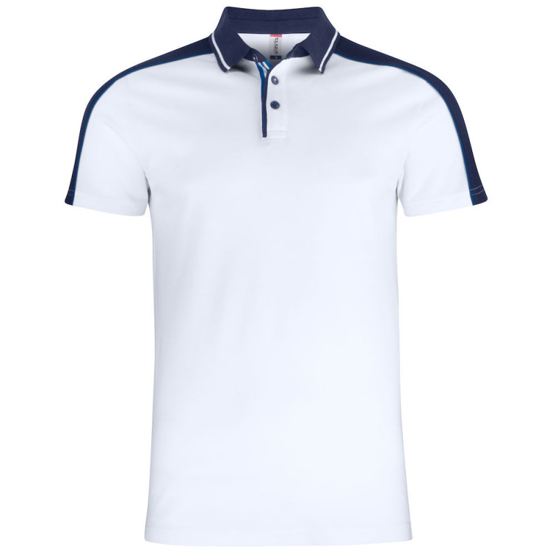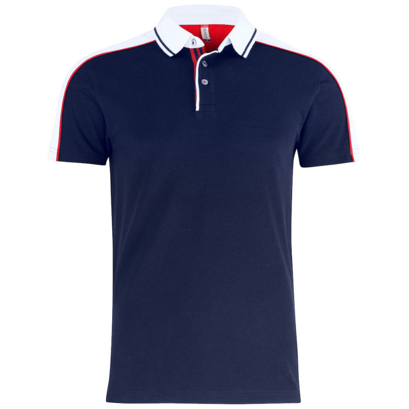 Moderní vícebarevné polo s kontrastními detaily. Toto polo je vyrobeno ze 100% prstencové bavlny se 3 knoflíky, tkaným límečkem a légou. Polo má postranní rozparky a zesílený pásek kolem krku. Dodává se s odnímatelným štítkem na zadní straně krku pro snadnou změnu značky. Oděv je předem sražen a ošetřen enzymem. Lze prát do 40°C