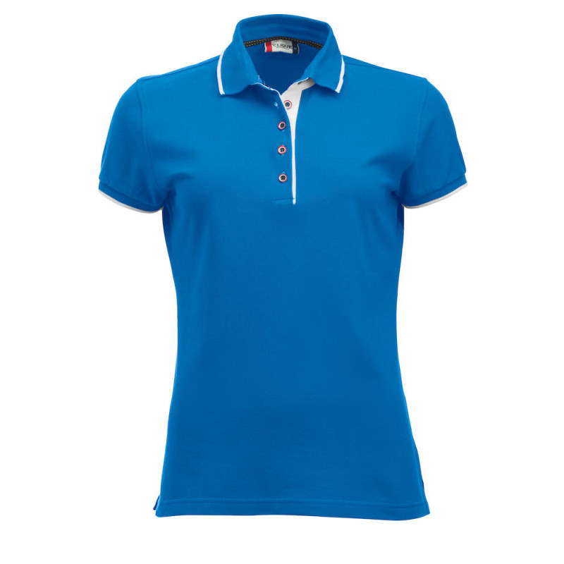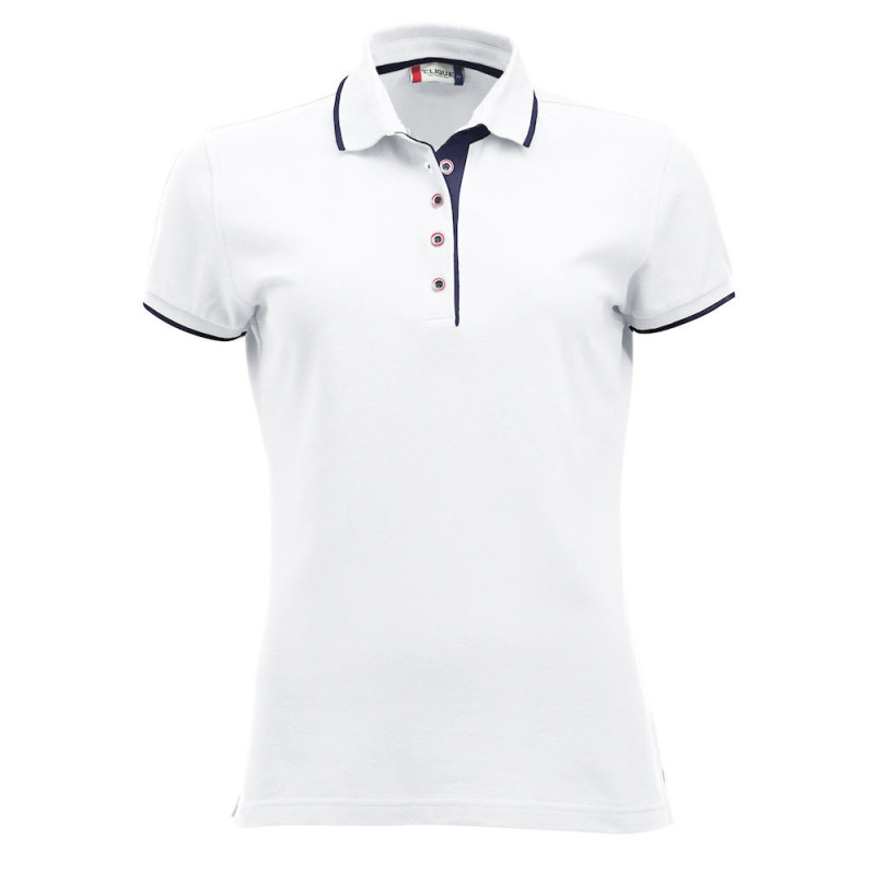 Polo s kontrastní barvou na knoflíkové légačce, nákrčníku a postranních rozparkech. Kontrastní pruhy na límci a manžetách rukávů. 3 tlačítka pro muže a 5 pro ženy. Lze prát do 40°C.