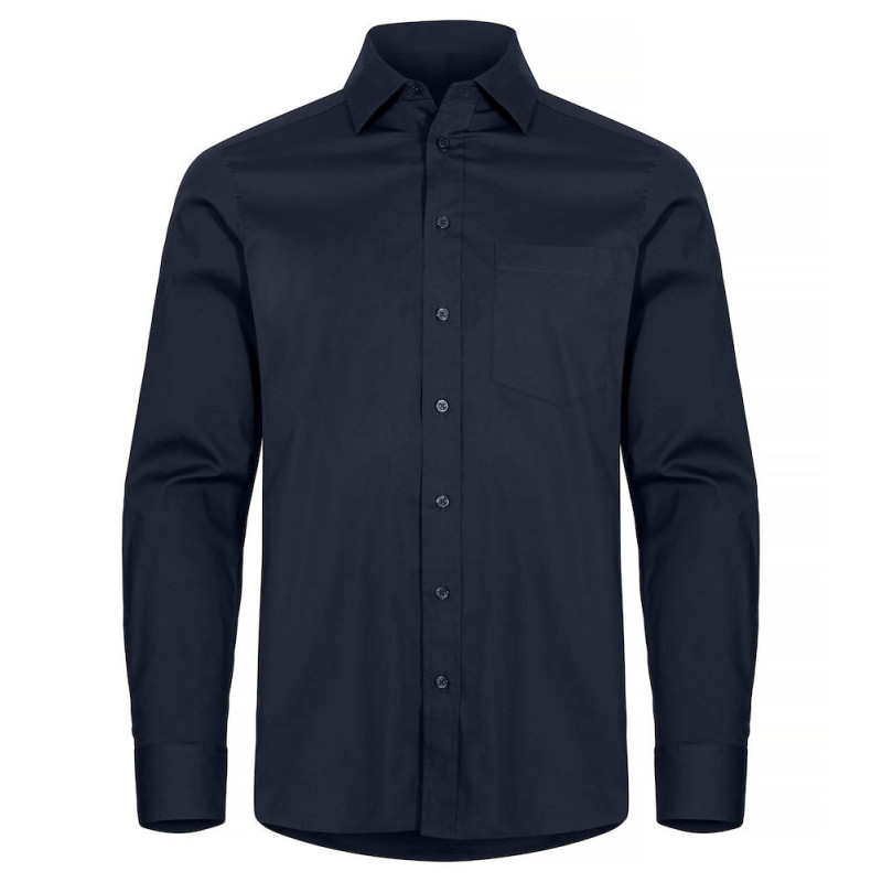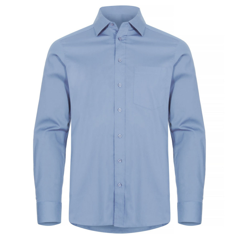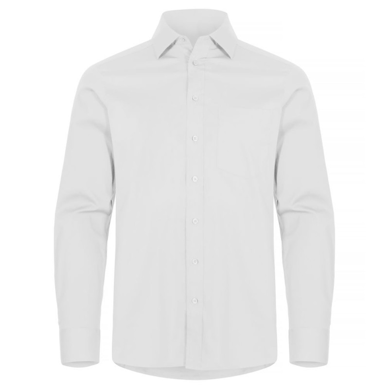 Strečová košile běžného střihu s dlouhým rukávem a knoflíkovou légou. Regulace na knoflíky na rukávech, u pánského modelu je náprsní kapsa.