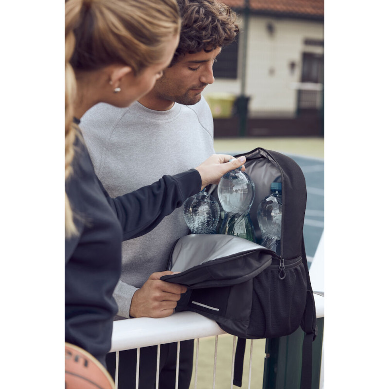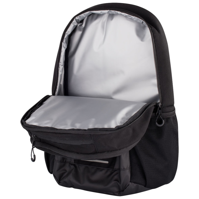 Dvě větší přihrádky, z nichž jedna je dobře izolovaná a funguje jako chladič, a jedna se síťovanými kapsami a háčkem na klíčenky.