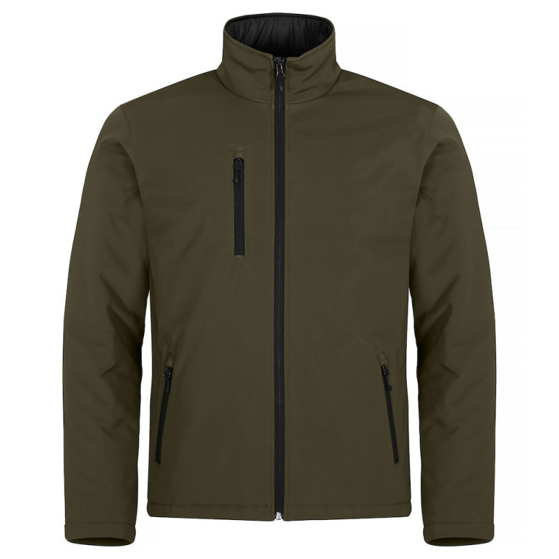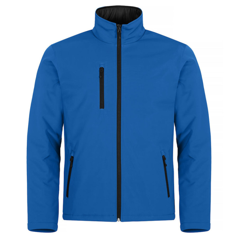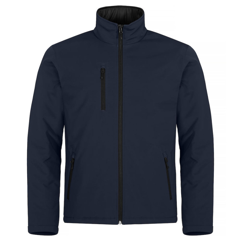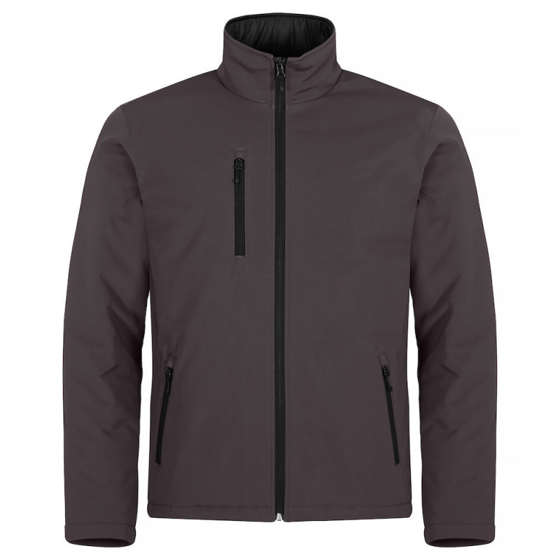 Čistý střih, vycpaná softshellová bunda. Tři vnější kapsy s reverzními SBS zipy a jedna vnitřní kapsa. Černá podšívka a výšivka na zip.