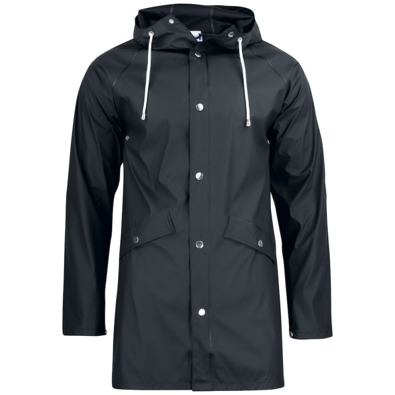 Klasická bunda do deště s kovovými patentky. Nastavitelná kapuce s lemem. 2 přední kapsy s klopou. Předloktí s kovovými větracími otvory, podlepenými švy a WP 8000.