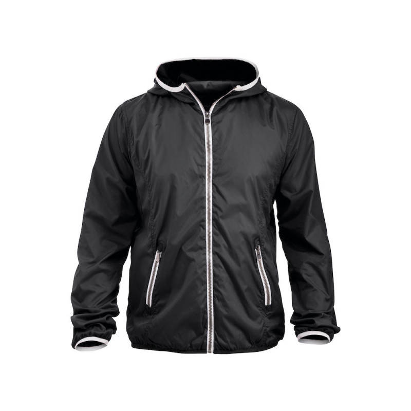 Módní větrovka s kapucí a ozdobnými zipy v metalickém vzhledu. Kontrastní barva na kapuci a manžetách rukávů. síťovaná podšívka. Lze prát do 40°C.