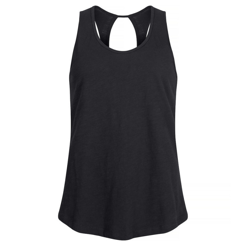 Moderní tílko obepínající postavu vyrobené ze 100% jersey bavlny předené kroužky. S bočními švy a módním průstřihem vzadu. Snadno odnímatelný štítek pro rebranding. Oděv je předem sražen a ošetřen enzymem.