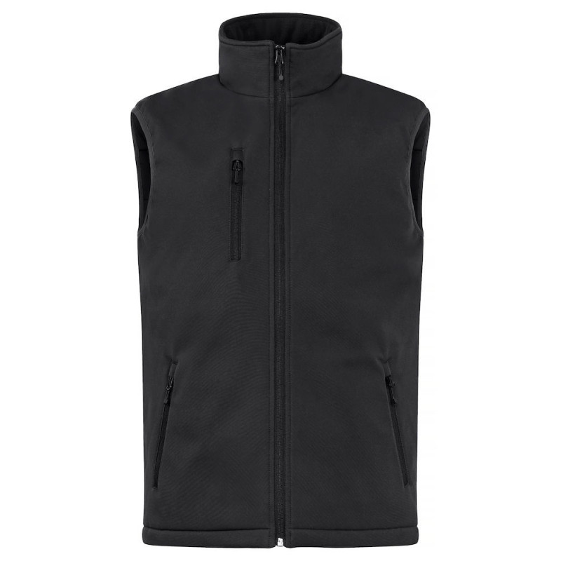 Čistý střih, vycpaná softshellová vesta. Tři vnější kapsy se zipy SBS a jedna vnitřní kapsa. Včetně černé vnitřní podšívky a suchého zipu.